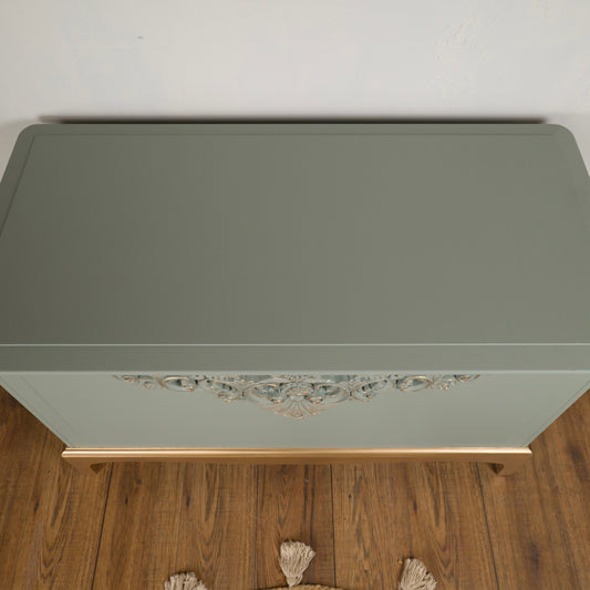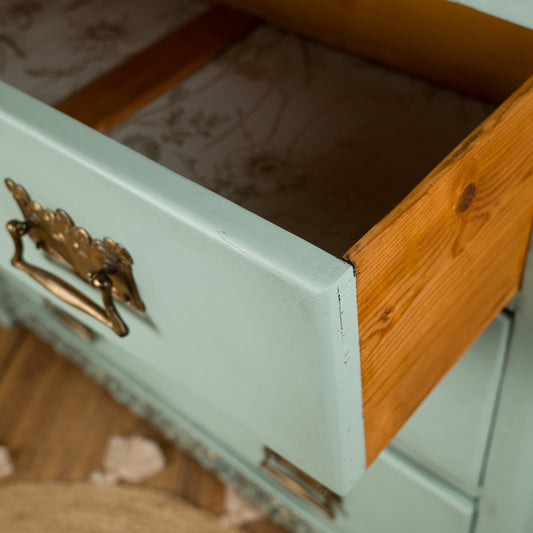 Vintage Aqua Chest of Drawers | Hand-Painted | Ornate Floral Detailing & Brass HardwareRegular price £525.00 GBPRegular priceUnit price per-