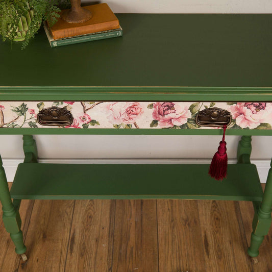 Vintage Green Floral Console Table – Upcycled Entryway Table with Decoupage Drawer FrontRegular price £365.00 GBPRegular priceUnit price per