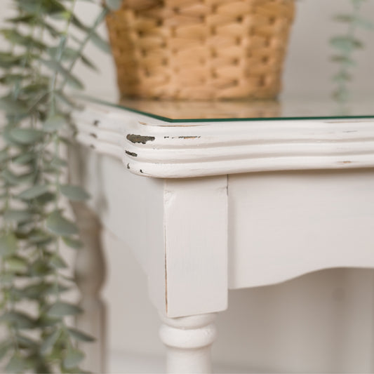 Pair of Vintage Upcycled Shabby Chic Side Tables with Botanical Glass TopsRegular price £185.00 GBPRegular priceUnit price per-
