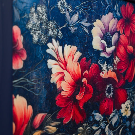 Hand-Painted Upcycled Navy Lebus MCM Chest of Drawers with Floral DetailingRegular price £415.00 GBPRegular priceUnit price per-