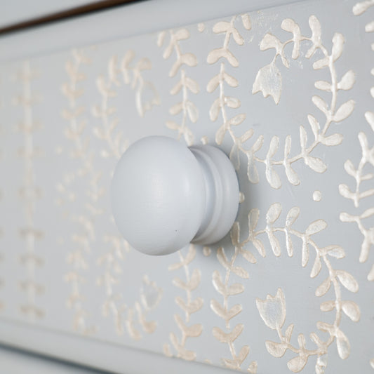 Hand-Painted Blue Chest of Drawers with Pearl Effect Stencil Detail | Vintage Upcycled FurnitureRegular price £465.00 GBPRegular priceUnit price per-