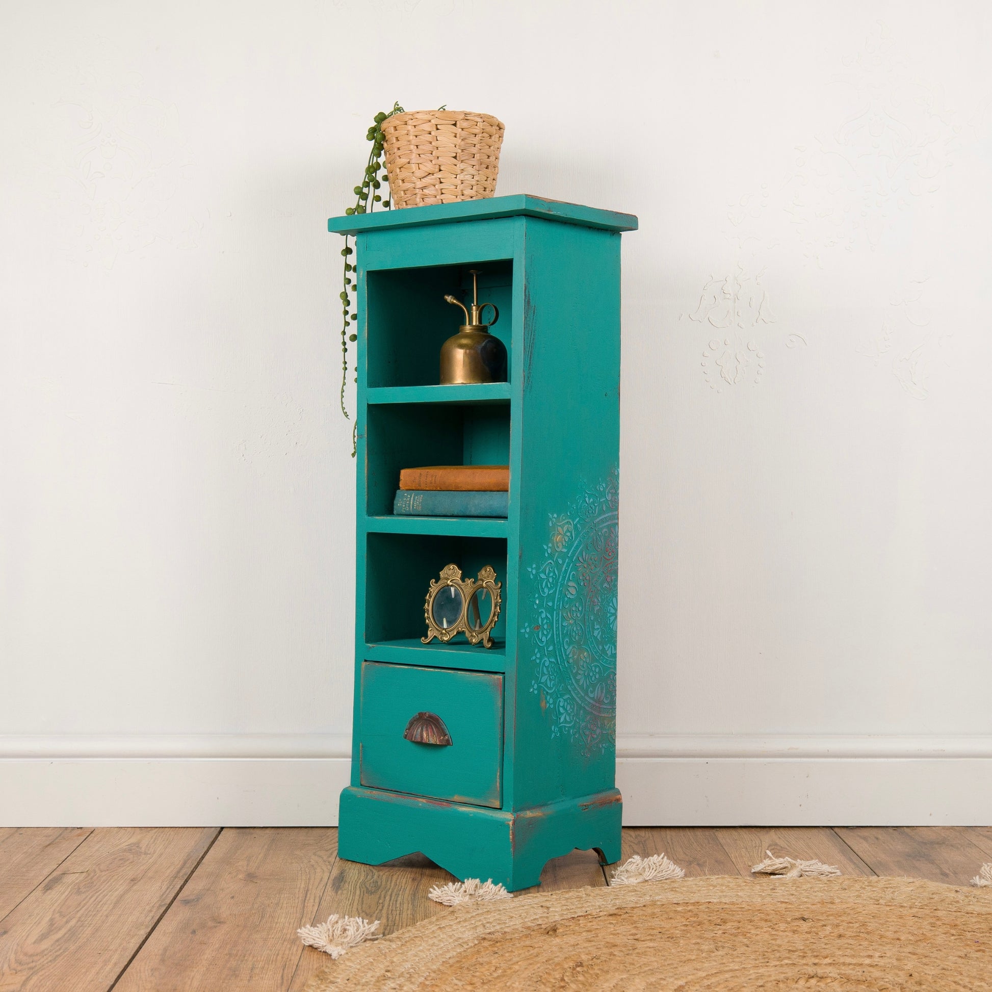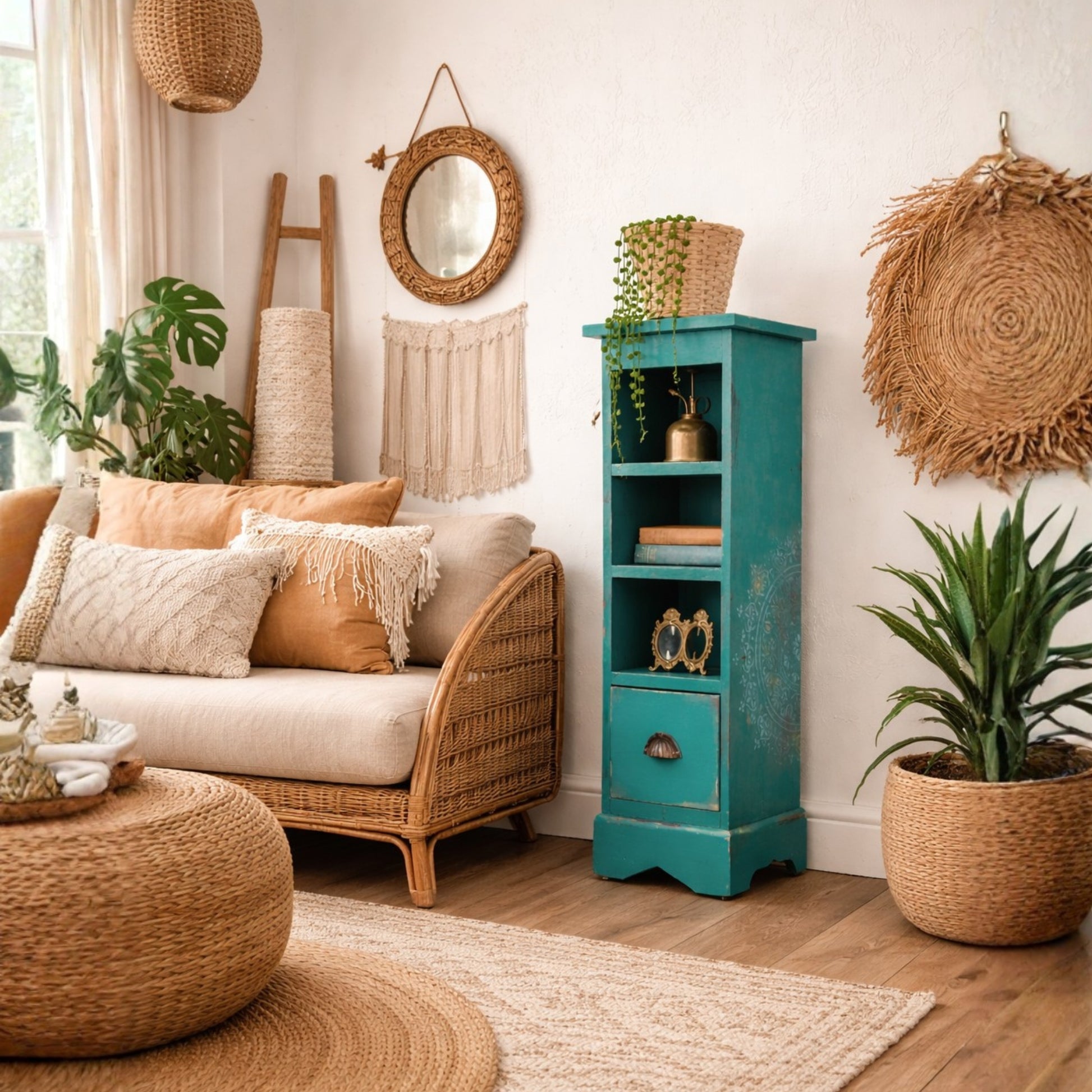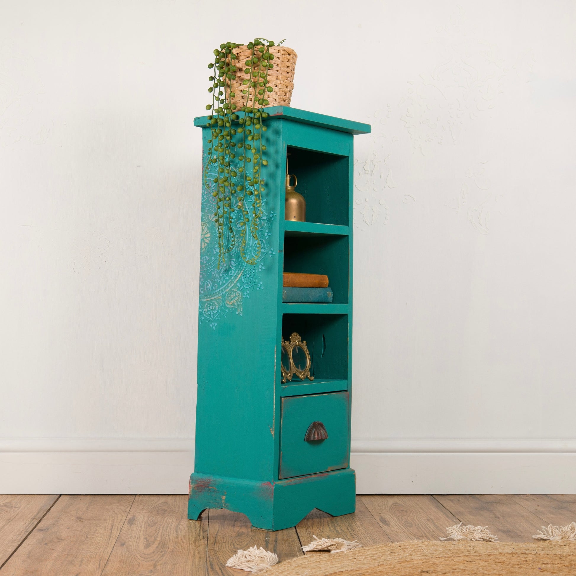 Slimline Boho Plant Table | Upcycled Vintage Side Table | Teal Accent Furniture